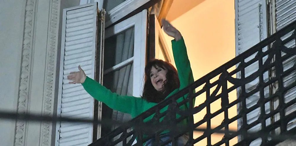 El saludo de la ex jefa de Estado a la militancia se dio después de que el Tribunal Oral en lo Federal Criminal 2 autorizara a Fernández de Kirchner el uso del balcón del lugar donde se encuentra cumpliendo la sentencia y dispusiera, además, la colocación de la tobillera electrónica.