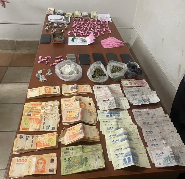 En los procedimientos se secuestraron más de 70 envoltorios de cocaína, 16 frascos con marihuana, un trozo de cocaína compactada, más de 1.100.000 pesos en efectivo, elementos de corte y fraccionamiento, y varios teléfonos celulares. Las investigaciones continúan con el objetivo de desarticular completamente las actividades del clan.