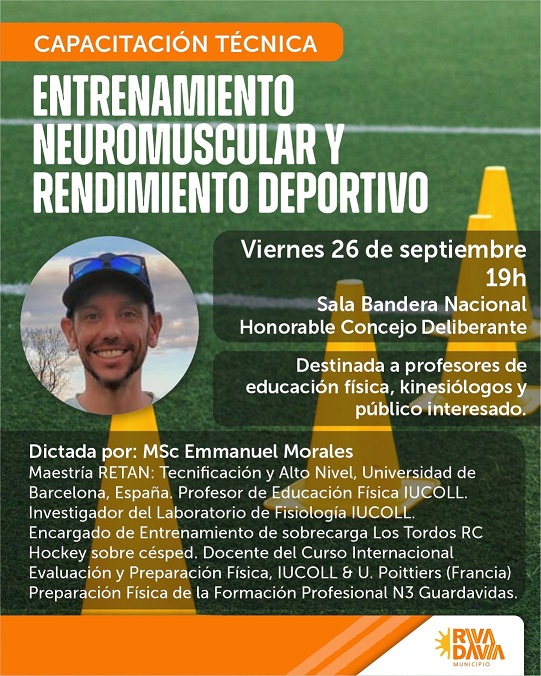 Este viernes 26 de septiembre, a las 19, la Sala Bandera Nacional del Honorable Concejo Deliberante de Rivadavia será escenario de una capacitación técnica gratuita destinada a profesores de educación física, kinesiólogos y público interesado.