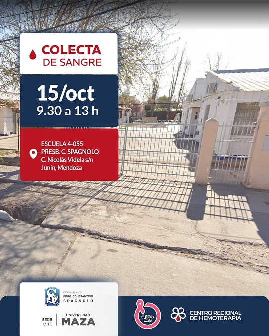 La iniciativa está organizada por el Centro Regional de Hemoterapia, por la Sede Este de la Universidad Maza y por la propia escuela Spagnolo. El objetivo es promover la donación voluntaria y habitual de sangre, una acción solidaria que puede salvar vidas.