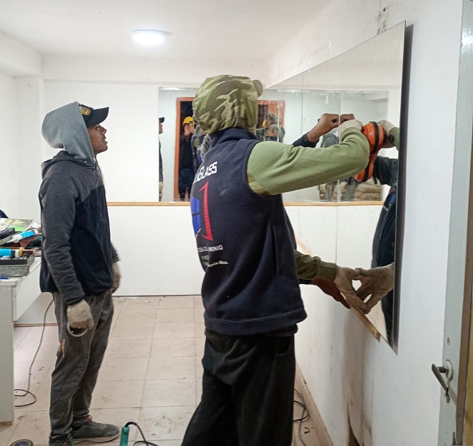 Otras obras incluyen la colocación de puertas y rejas para evitar el vandalismo, y la instalación de dos tanques de agua nuevos y toda la cañería de entrada y salida de agua nueva.