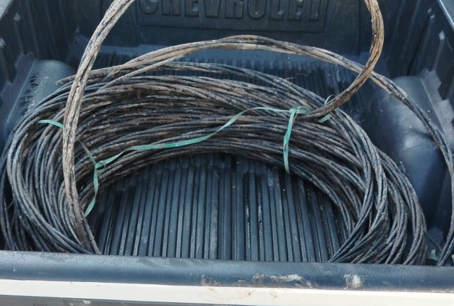 En la caja de la camioneta los uniformados hallaron un rollo de aproximadamente 40 metros de cable cortado y una escalera mecánica. En las inmediaciones se verificó la instalación de postes de tendido eléctrico, desde donde había sido sustraído el material.